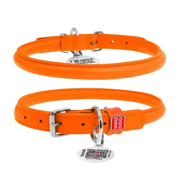Нашийник для собак шкіряний WAUDOG Glamour з QR паспортом, круглий, S, Д 10 мм, Дл 33-41 см (4820152561381)