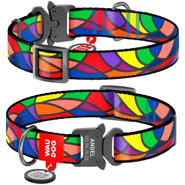 Нейлоновий нашийник для собак WAUDOG Nylon з QR паспортом, з малюнком "Вітраж", металева пряжка-фастекс із майданчиком для г