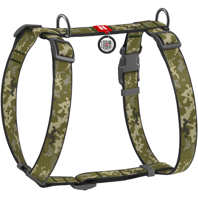 Шлея для собак анатомічна H-образна з QR-паспортом, малюнок "Мілітарі", пластиковий фастекс, розмір S (320-4026)