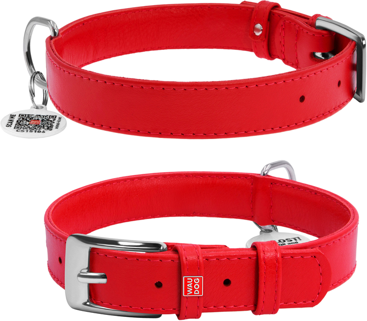 Нашийник для собак шкіряний WAUDOG Glamour з QR паспортом без прикрас M Ш 20 мм Дов 30-39 см Червоний (4820152560841)