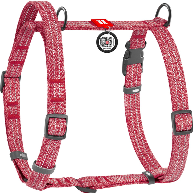 Шлея для собак Н-подібна WAUDOG Re-cotton з QR паспортом світловідбивна L 25 мм 60-85 см 60-100 см Червоний (25933Collar)