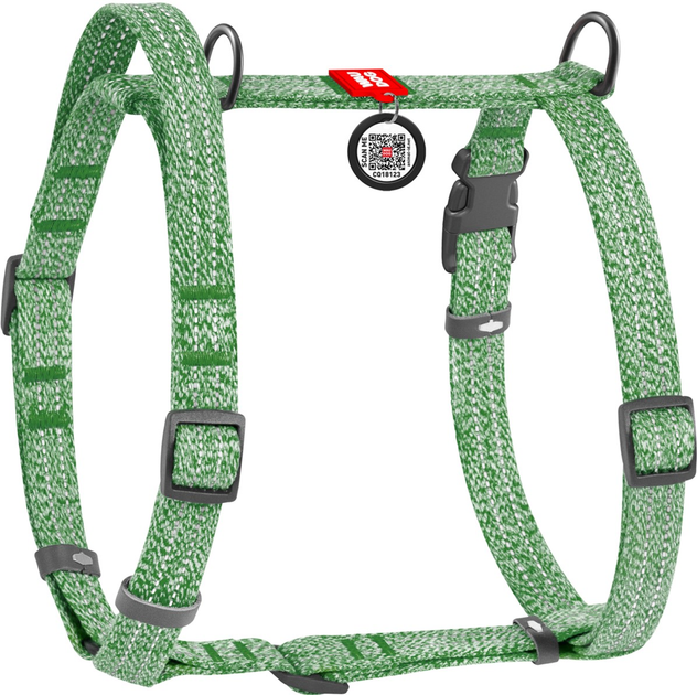 Шлея для собак Н-подібна WAUDOG Re-cotton з QR паспортом світловідбивна L 25 мм 60-85 см 60-100 см Зелений (259318Collar)