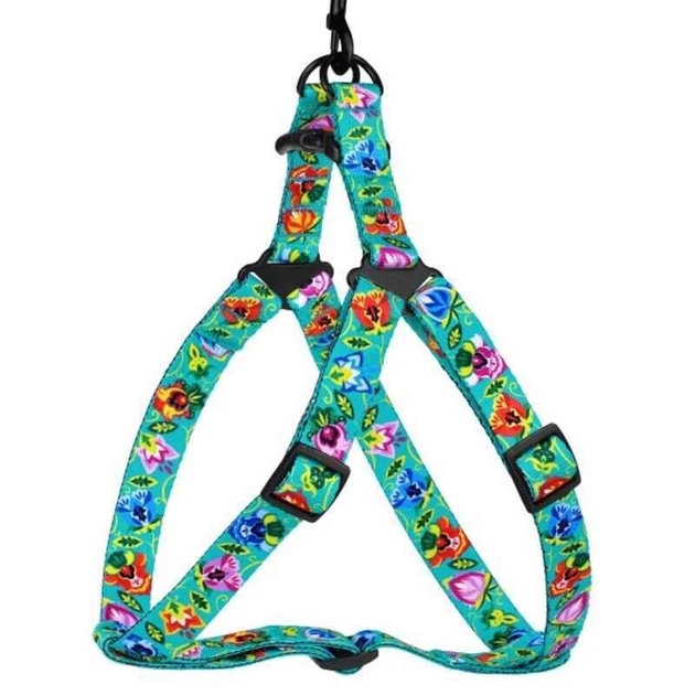 Шлея нейлонова з металевою фурнітурою для собак різних порід Bronzedog Dog Urban Folk Flowers Menthol 2,0х45-60 см (20070330