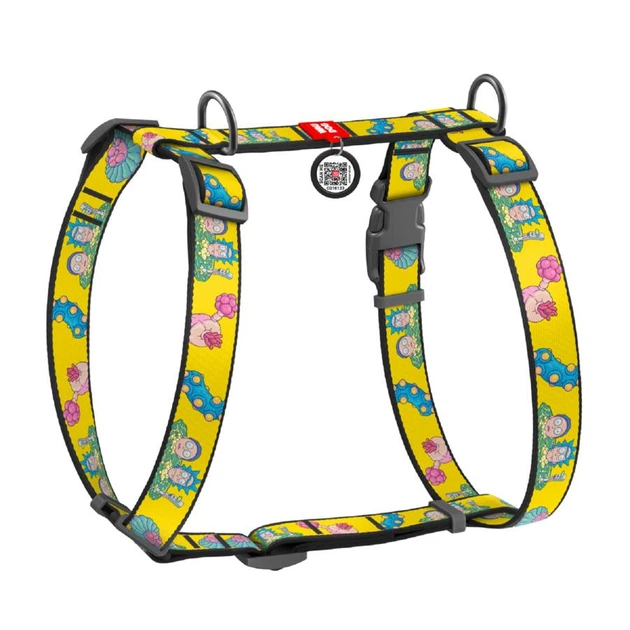 Шлея для собак анатомічна H-образна WAUDOG Nylon з QR-паспортом малюнок "Рік та Морті 1" Розмір M
