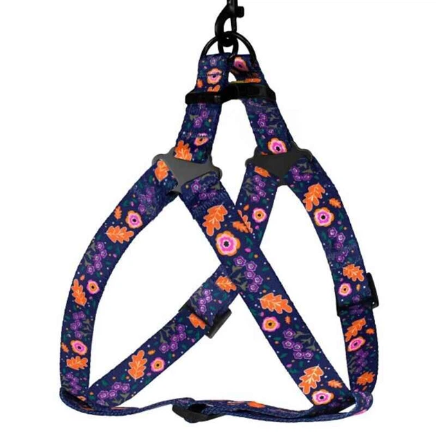 Шлея нейлонова з металевою фурнітурою для собак різних порід Bronzedog Dog Urban Folk Flowers Black 2,0х45-60 см (2007033018
