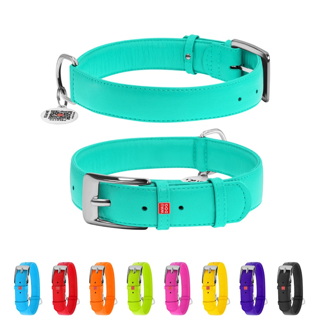 Ошейник для собак шкіряний WAUDOG Glamour з QR паспортом, без прикрас, XL, Ш 35 мм, Дов 46-60 см ментоловий