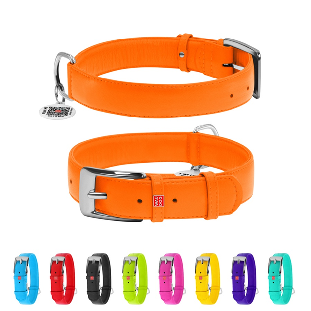 Нашийник для собак шкіряний WAUDOG Glamour з QR паспортом, без прикрас, Ш 35 мм, Дов 46-60 см помаранчевий