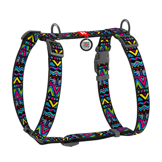 Шлея для собак анатомічна H-подібна WAUDOG Nylon з QR паспортом, з малюнком "Інді", розмір S (5595)