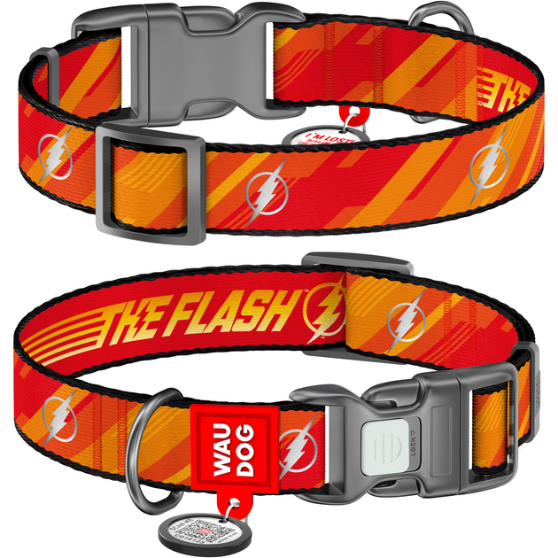 Нашийник для собак нейлоновий WAUDOG Nylon з QR паспортом, світловідбивний, малюнок "Флеш Лого", пластиковий фастекс, розмір