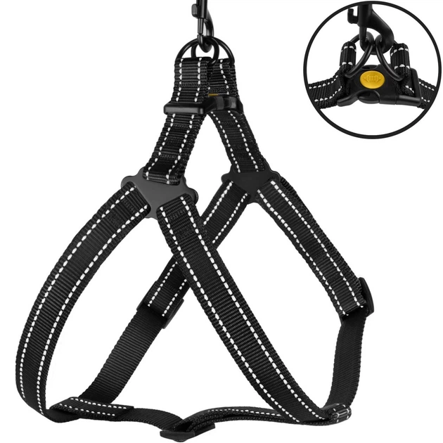 Шлея для Собак BronzeDog Active Нейлонова зі світловідбивання Чорна 45-60 см (71/1301)