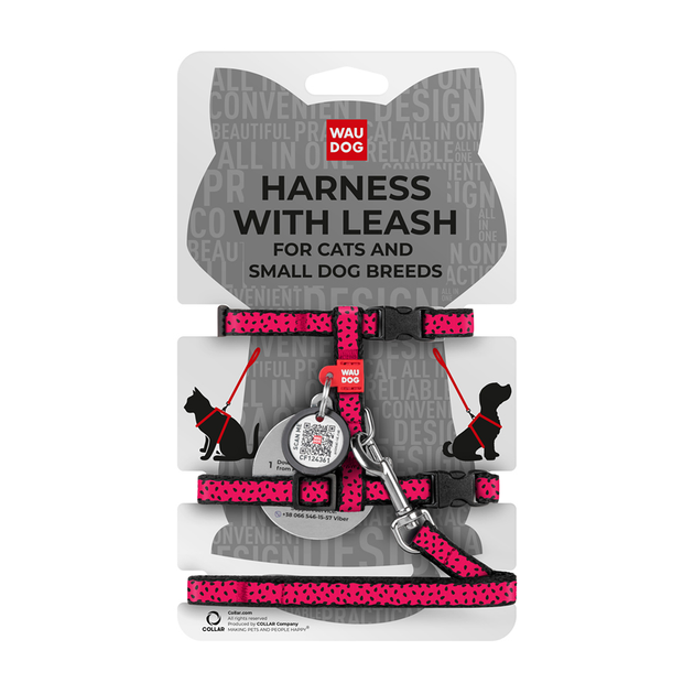 Шлея з повідцем для котів та дрібних порід собак WAUDOG Nylon c QR паспортом, малюнок "Леопард", пластиковий фастекс, XS, Ш