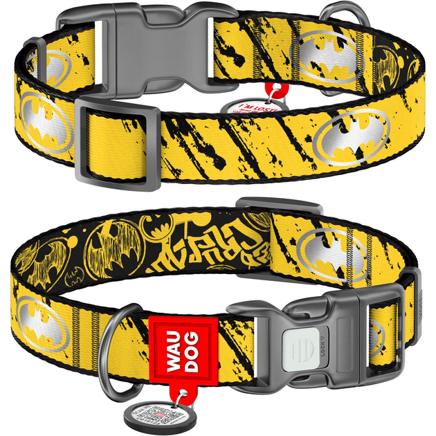 Нашийник для собак нейлоновий WAUDOG Nylon з QR паспортом, світловідбивний, малюнок "Бетмен Ескіз", пластиковий фастекс, роз