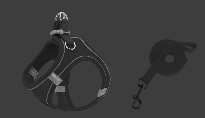 Нагрудний ошийник + повідок для собак та котів Miarko Чорний S Шлейка