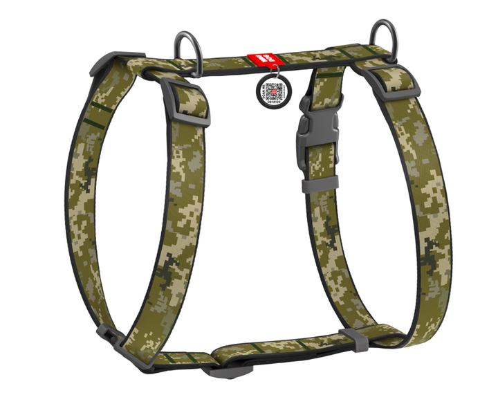 Шлея для собак анатомічна з QR-паспортом Мілітарі ширина 25 мм, шия 50-90 см, об'єм живота 60-100см
