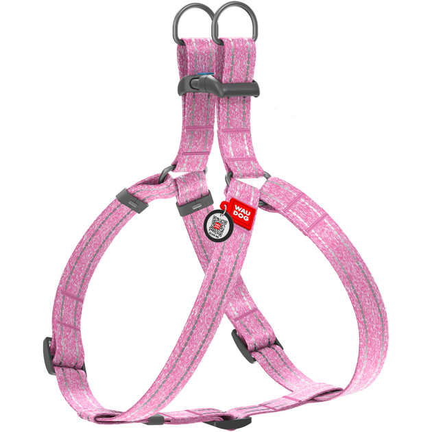 Шлея для собак WAUDOG Re-cotton з QR паспортом, з відновленої бавовни, світловідбивна, 40-55 см 15 мм Рожева (03247)