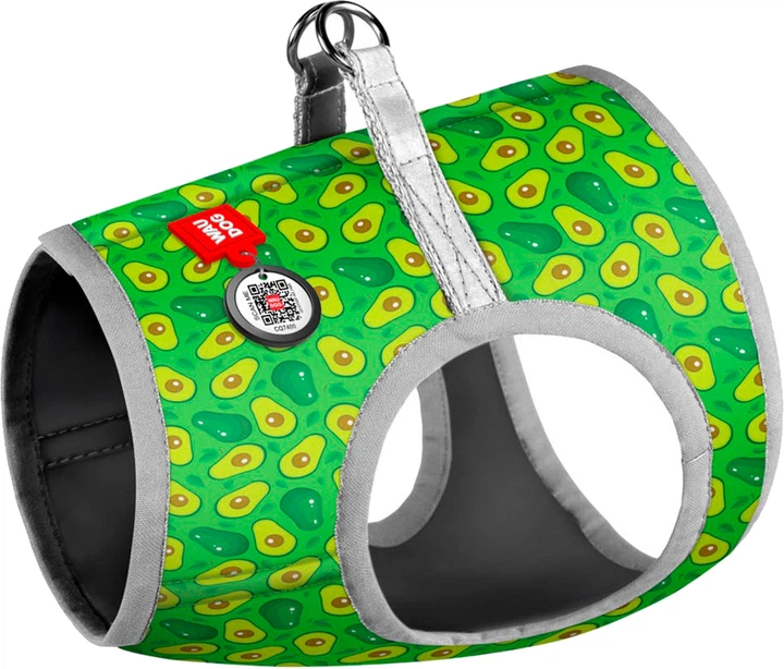 Шлея для собак м'яка Collar WAUDOG Clothes з QR паспортом, малюнок "Авокадо", XS2, В 28-31 см, С 20-22 см (2947)