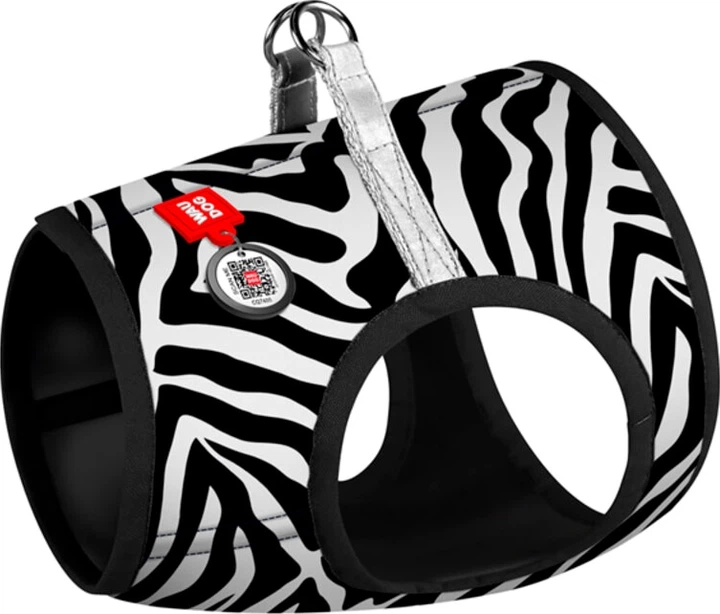 Шлея для собак м'яка WAUDOG Clothes з QR паспортом, малюнок "Зебра", XS2, В 28-31 см, С 20-22 см (221-0055collar)