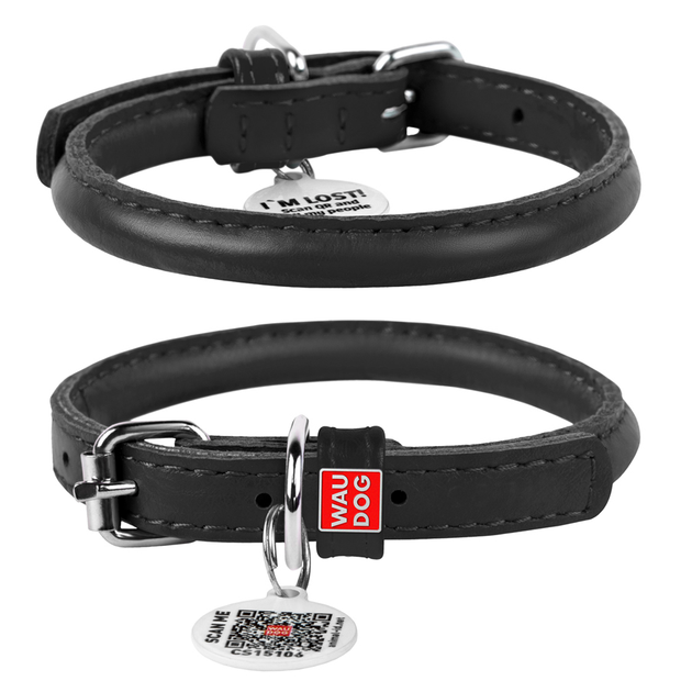 Шкіряний нашийник для собак WAUDOG Glamour з QR паспортом круглий Д 8 мм Д 25-33 см Black (22411)