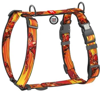 Шлея для собак анатомічна H-подібна WAUDOG Nylon з QR-паспортом, малюнок "Швидкість Флеша", пластиковий фастекс, М, Ш 20 мм,