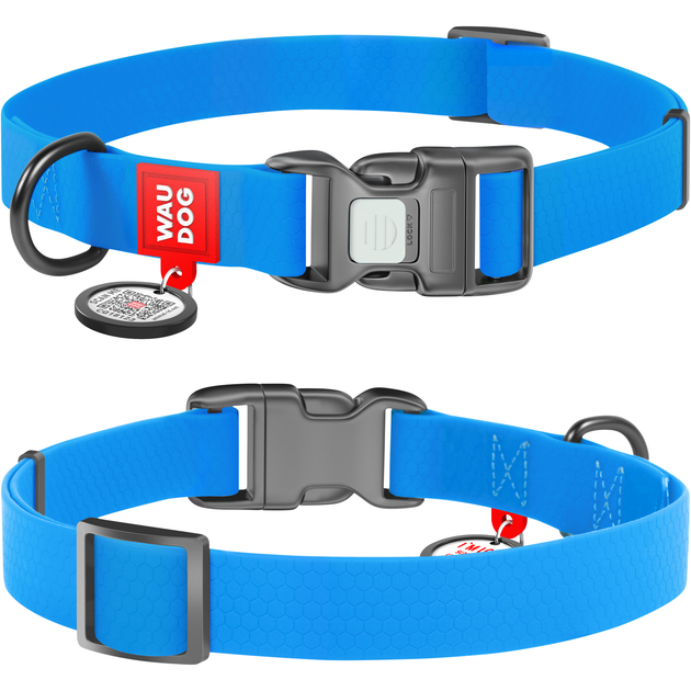 Нашийник для собак WAUDOG Waterproof з QR паспортом, водостійкий, пластикова пряжка-фастекс із замком 38-58 см 25 мм Блакитн