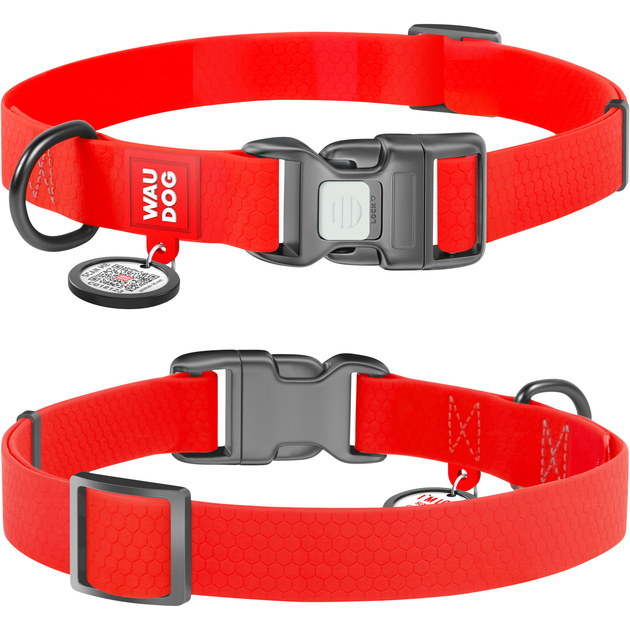 Нашийник для собак WAUDOG Waterproof з QR паспортом, водостійкий, пластикова пряжка-фастекс із замком 38-58 см 25 мм Червони