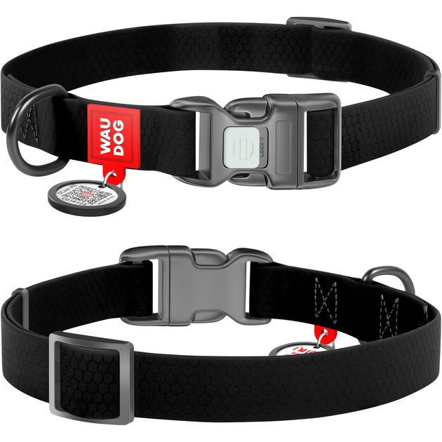 Нашийник для собак WAUDOG Waterproof з QR паспортом, водостійкий, пластикова пряжка-фастекс із замком 38-58 см 25 мм Чорний