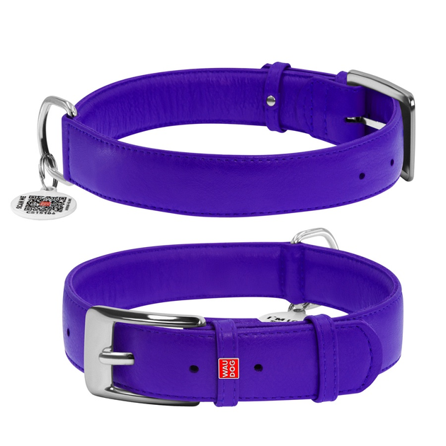 Шкіряний нашийник для собак WAUDOG Glamour з QR паспортом без прикрас XL Ш 35 мм 46-60 см Purple (33229)