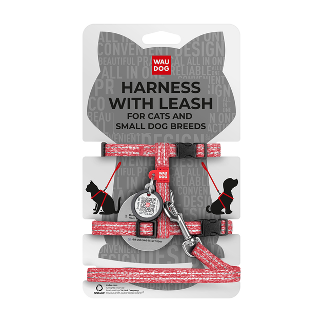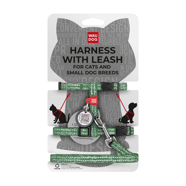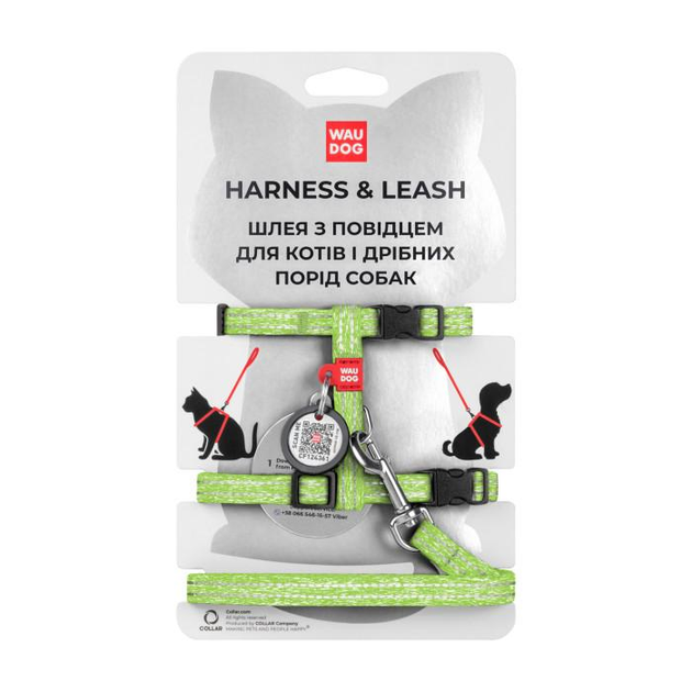 Шлея з повідцем для котів WAUDOG Re-cotton з QR паспортом, з відновленої бавовни, світловідбиваюча,