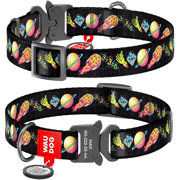 Нашийник для собак нейлоновий WAUDOG Nylon з QR паспортом, металевий фастекс, малюнок "Рік та Морті 3", 33-49 см 25 мм (4507