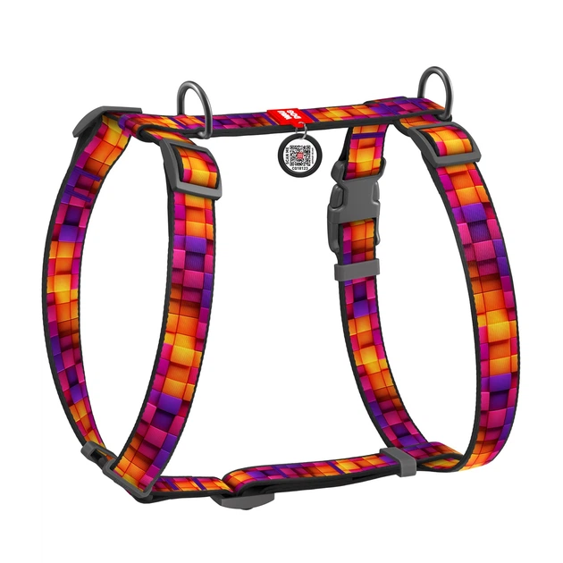 Шлея анатомічна з QR адресником WAUDOG Nylon малюнок "Куби" L (4823089376943)