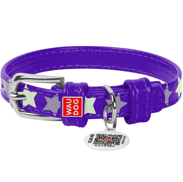 Ошейник для собак шкіряний WAUDOG Glamour з QR паспортом, візерунок "Зірочка", світлонакопичувальний/світловідбивний, XS, Ш