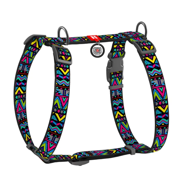 Шлей для собак анатомічний H-подібний WAUDOG Nylon з QR-паспортом малюнок "Інді" пластиковий фастекс М Ш 20 мм А 40-70 В 50-
