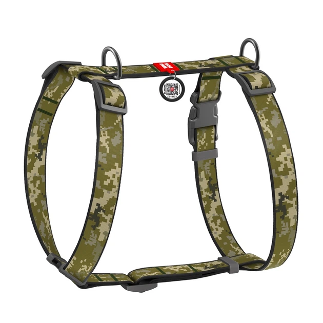 Шлейка анатомічна H-подібна для собак WAUDOG Nylon Мілітарі, з QR-паспортом, пластиковий фастекс, M, ширина 20 мм, регулюван