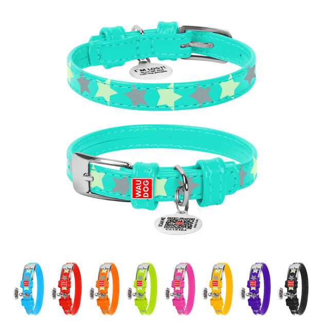 Нашийник для собак WAUDOG шкіряний Glamour з QR паспортом, візерунок Зірочка, що світиться/світловідбиваючий, XS, Ш 12 мм, Д