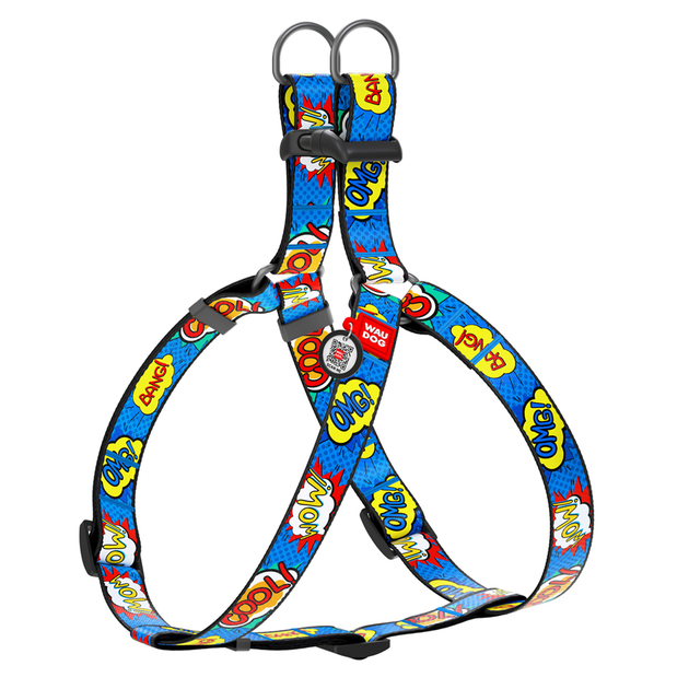 Шлей для собак анатомічний WAUDOG Nylon c QR паспортом, малюнок "Графіті", пластиковий фастекс, Ш 15 мм, Дл 40-55 см