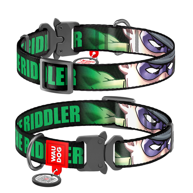 Нашийник для собак WAUDOG нейлоновий Nylon c QR паспортом, малюнок Загадник, металева пряжка-фастекс, Ш 20 мм, Д 24-40 см