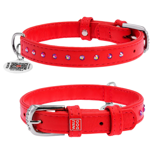 Нашийник для собак шкіряний WAUDOG Glamour з QR паспортом, з клейовими стразами, XS, Ш 12 мм, Дл 21-29 см (4820082499082)