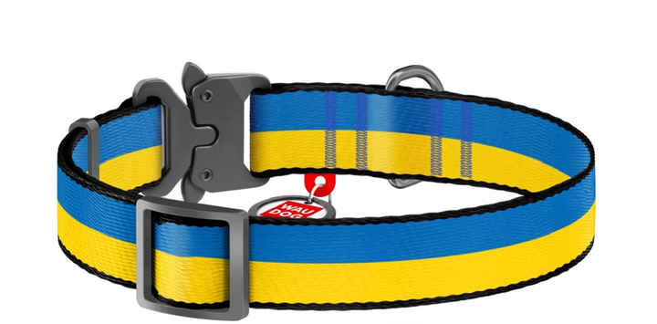 Нашийник для собак нейлоновий з QR паспортом WAUDOG Nylon Colors of freedom XL 35-58 см х 25 мм Жовто-блакитний (4508-4020)
