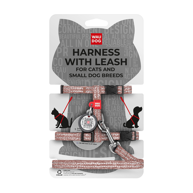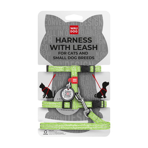 Шлея з повідцем для котів WAUDOG Re-cotton з QR паспортом, з відновленої бавовни, світловідбиваюча, пластиковий фастекс, роз