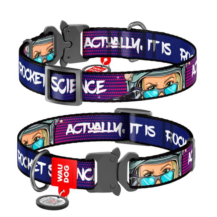 Нашийник для тварин WAUDOG Nylon з QR-паспортом "Космос. Ракетобудування" металева пряжка-фастекс L (4507-0124) 4507-0124