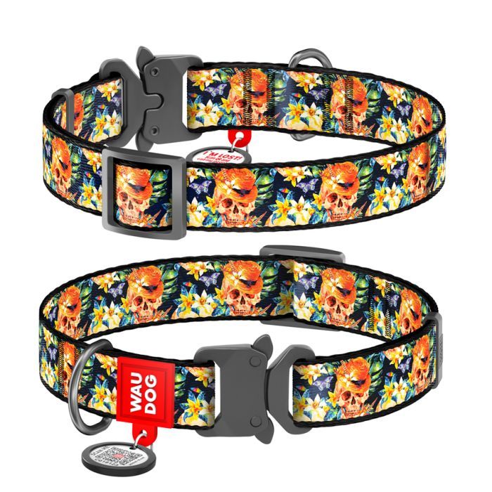 Нашийник для тварин WAUDOG Nylon з QR-паспортом "Гламурні черепа" металічна пряжка-фастекс L (5164) 5164
