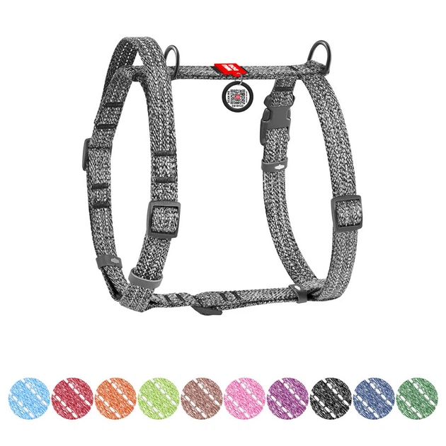 Шлей для собак з ручкою з відновленої бавовни анатомічна Н-подібна WAUDOG Re-cotton з QR паспортом, світловідбивна, пластико