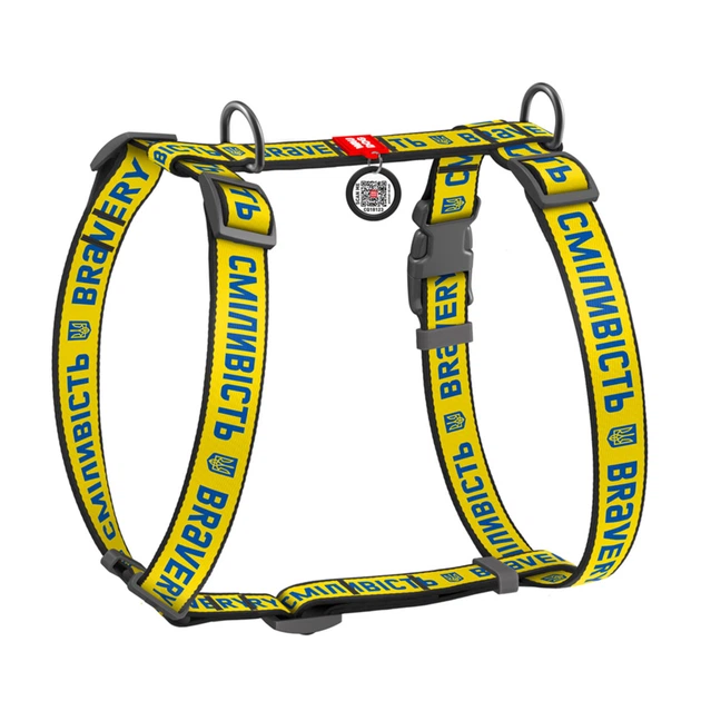 Шлея для собак анатомічна H-подібна WAUDOG Nylon з QR-паспортом, малюнок "Сміливість", пластиковий фастекс, L, Ш 25 мм, А 50