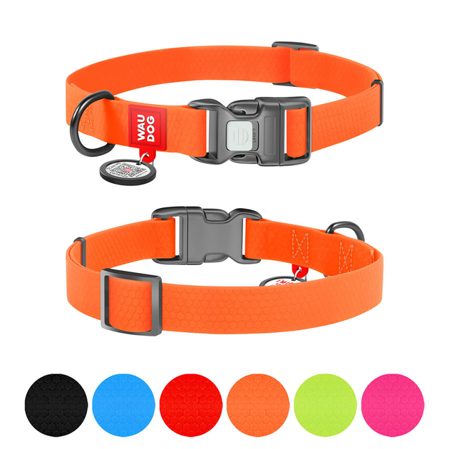 Нашийник для собак водостійкий WAUDOG Waterproof з QR-паспортом, пластикова пряжка-фастекс, Ш 25 мм, Д 38-58 см, оранжевий