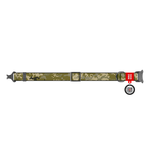Нашийник для собак нейлоновий WAUDOG Nylon з QR-паспортом, малюнок "Мілітарі", металевий фастекс, L, Ш 25 мм,