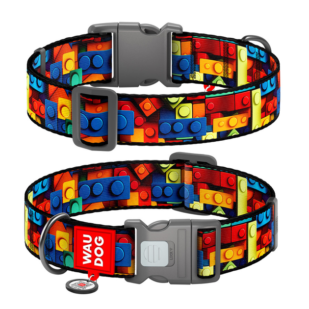 Нашийник для собак нейлоновий WAUDOG Nylon з QR паспортом, малюнок "Блоки", пластиковий фастекс, XXL, Ш 35 мм,