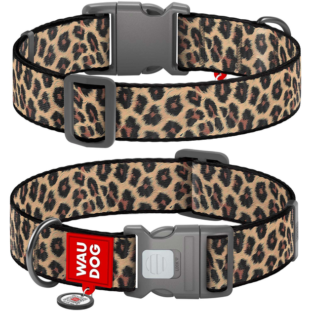 Нашийник для собак нейлоновий WAUDOG Nylon c QR паспортом, малюнок "Леопард", пластиковий фастекс, XXL, Ш 35 мм, Дл 46-70 см