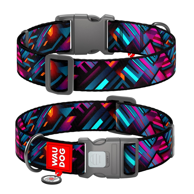 Нашийник для собак WAUDOG Nylon Infinite Worlds XXL, мультиколор, нейлоновий, з QR-паспортом, пластиковий фастекс, ширина 35