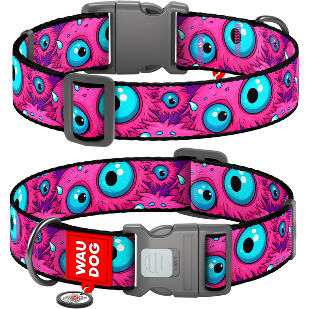Нашийник для собак нейлоновий WAUDOG Nylon з QR паспортом, малюнок "Око монстра", пластиковий фастекс, розмір XXL, 46-70 см,