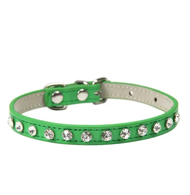 Нашийник зі стразами для собак і котів Зелений M (25-32 см)